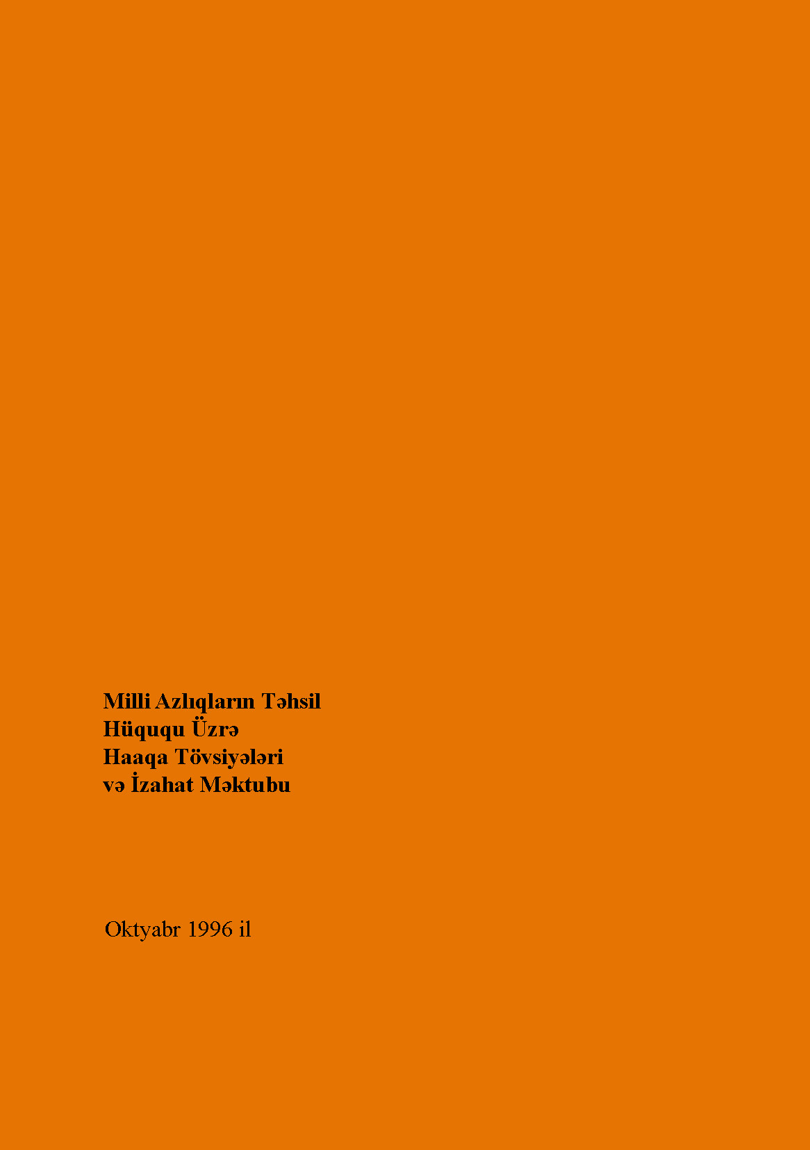 Cover of Milli Azlıqların Təhsil Hüququ Üzrə Haaqa Tövsiyələri (The Hague Recommendations Regarding the Education Rights of National Minorities)