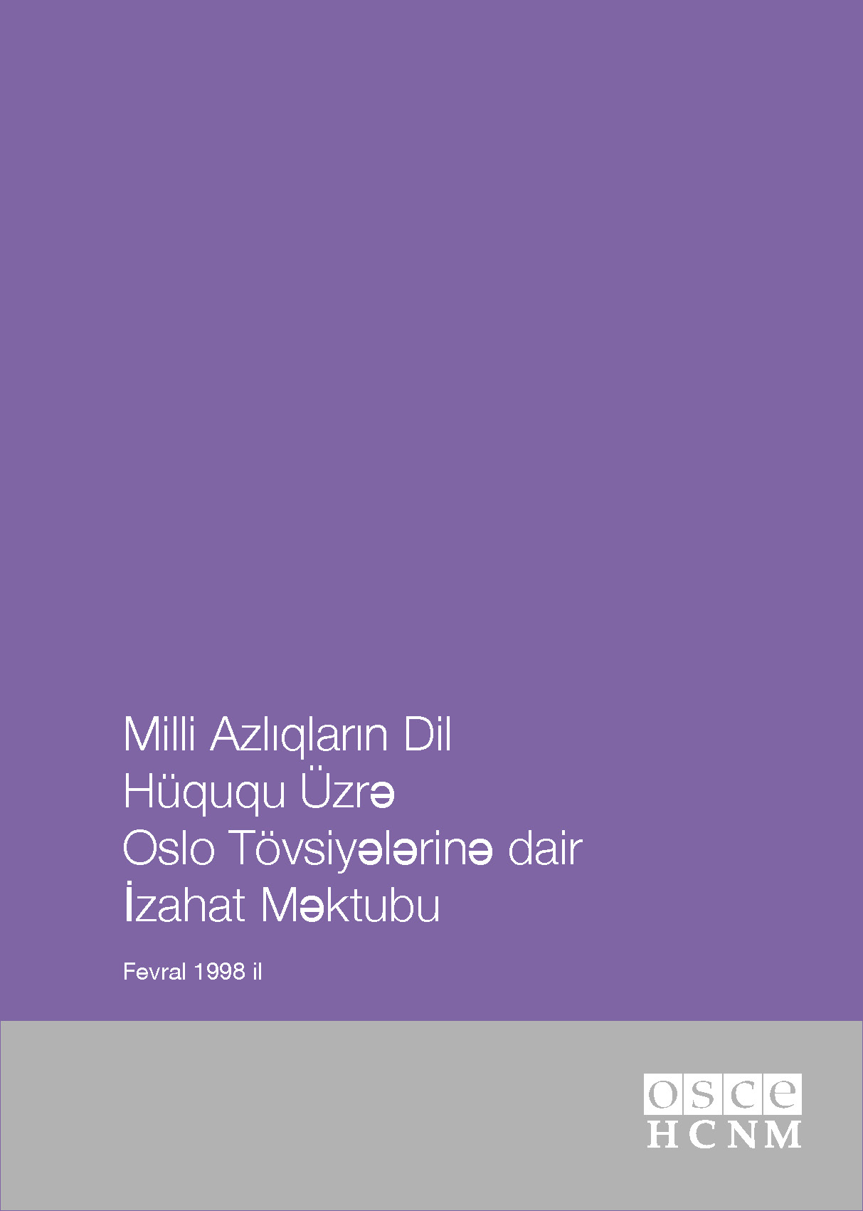 Cover of Milli Azlıqların Dil Hüququ Üzrə Oslo Tövsiyələrinə dair İzahat Məktubu (The Oslo Recommendations regarding the Linguistic Rights of National Minorities)