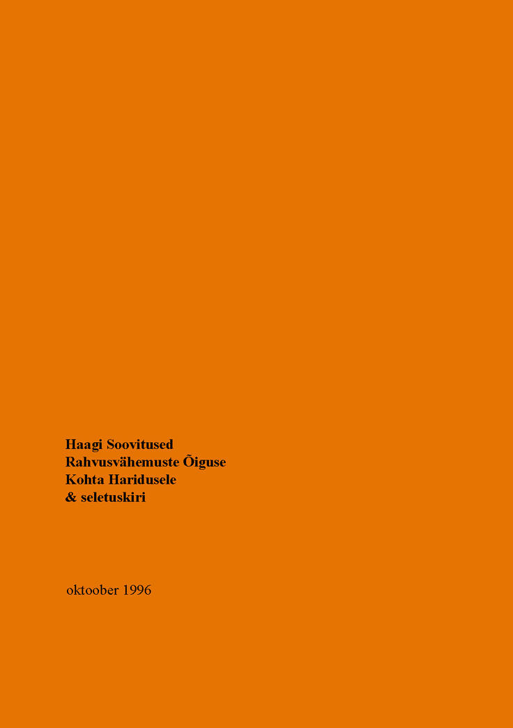 Cover of Haagi Soovitused Rahvusvähemuste Õiguse Kohta Haridusele (The Hague Recommendations on the Education Rights of National Minorities)