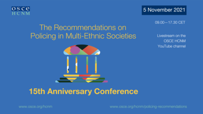 The OSCE High Commissioner on National Minorities (HCNM) is organizing an Anniversary Conference to mark 15 years since the adoption of The Recommendations on Policing in Multi-Ethnic Societies (Policing Recommendations).