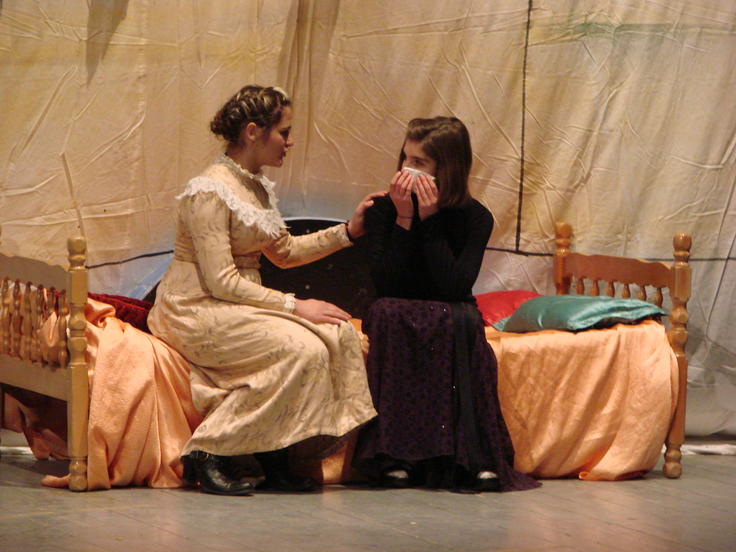 Students Shqiponja Kasa (r), ethnic Albanian, and Rebeka Lazeska, ethnic Macedonian, perform in Shakespeare's "Romeo and Juliet" in an OSCE project to promote inter-ethnic communication in Kicevo, former Yugoslav Republic of Macedonia, 28 February 2009.