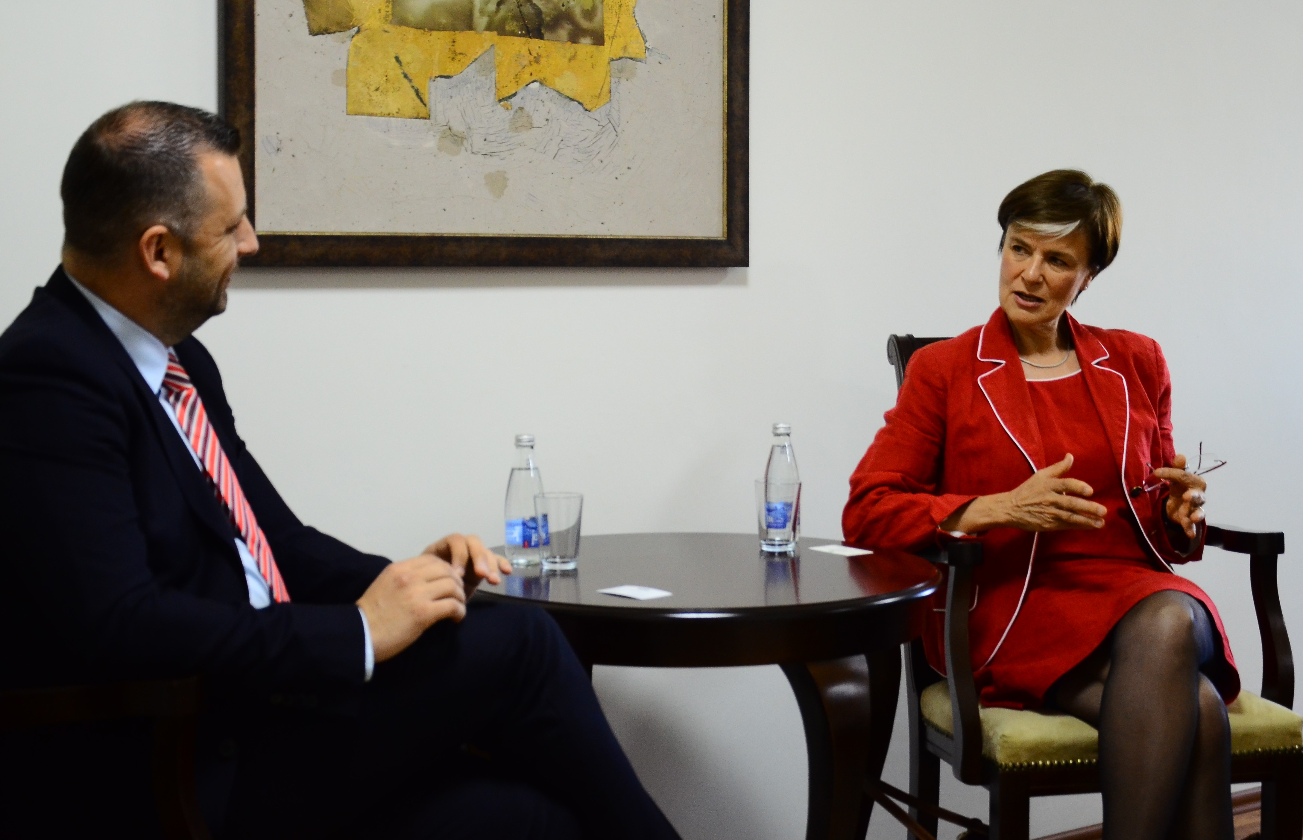 OSCE High Commissioner on National Minorities (HCNM) Astrid Thors meeting Minister of Communities and Returns, Dalibor Jevtić, while in Pristina on 8 June. Photo: Yllka Fetahaj/OSCE