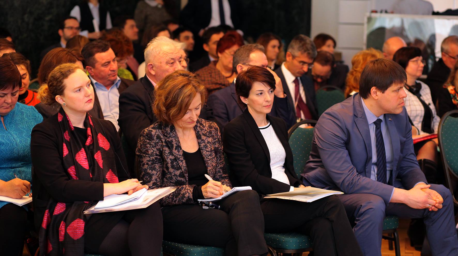 L-r: Sarah Stephan, HCNM project officer; Ilze Brands Kehris, elected member of the UN Human Rights Committee; Tina Gogheliani, Head of the Civic Integration Unit of the Office of the State Minister of Georgia for Reconciliation and Civic Equality; and Dmitri Burnashev, Director of the Integration and Migration Foundation Our People, Estonia, attend a conference organized by the office of the HCNM and Moldova’s Bureau of Inter-ethnic Relations on implementing Moldova’s Strategy for Consolidation of Inter-ethnic Relations 2017–2027, Chisinau, 16 February 2017.