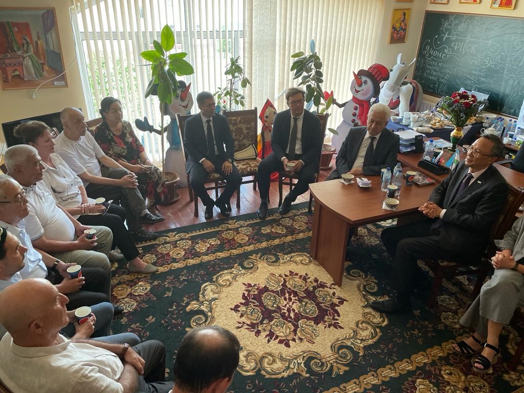 OSCE High Commissioner on National Minorities Kairat Abdrakhmanov discusses inter-ethnic issues with representatives of National Cultural Centres in the Fergana region, 2 August 2022.