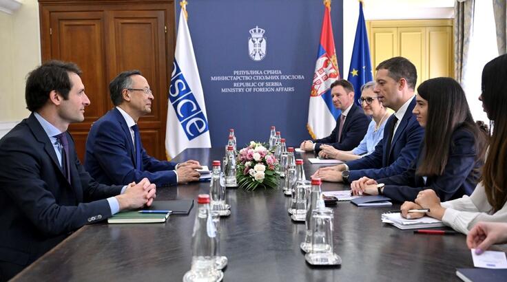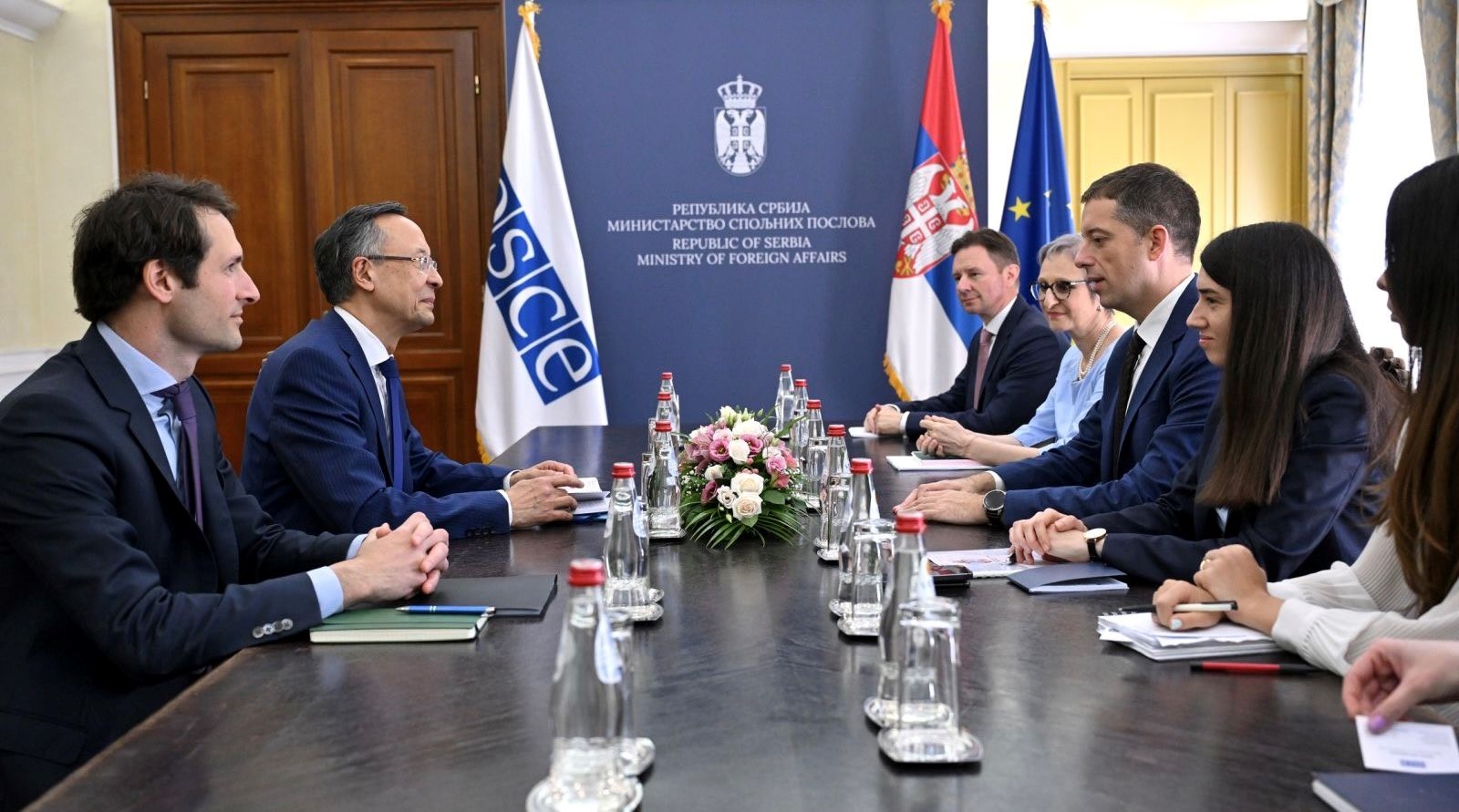 OSCE High Commissioner on National Minorities Kairat Abdrakhmanov meets Foreign Minister of Serbia Marko Đurić, Belgrade, 18 June 2024.