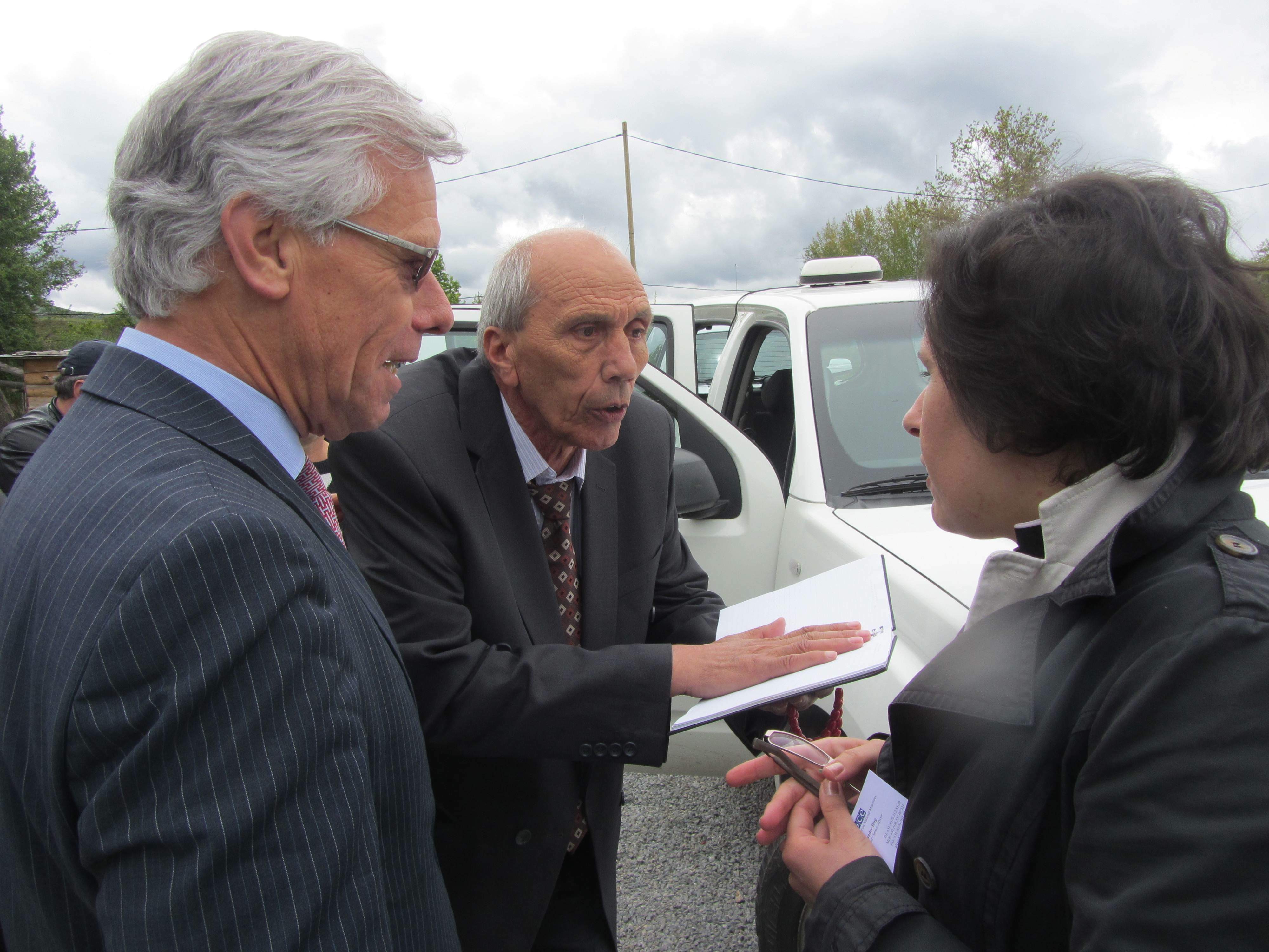 OSCE High Commissioner on National Minorities Knut Vollebaek (l) with Restelica/Restelicë School Director Misin Hoxha (c) and OSCE Regional Centre Prizren Senior Human Rights Officer Sara Bonotti (r) in Dragash/Dragaš, 23 May 2012.