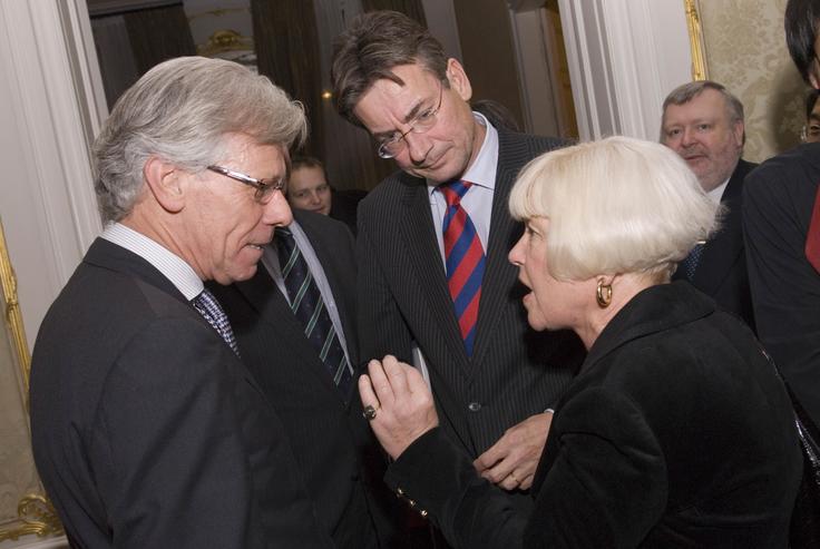 OSCE High Commissioner Knut Vollebaek (l), Netherlands Foreign Minister Maxime Verhagen (c) and Netherlands Permanent Representative to the OSCE Ida van Veldhuizen (r), at a reception to mark the HCNM's 15th anniversary, The Hague, 11 November 2008.