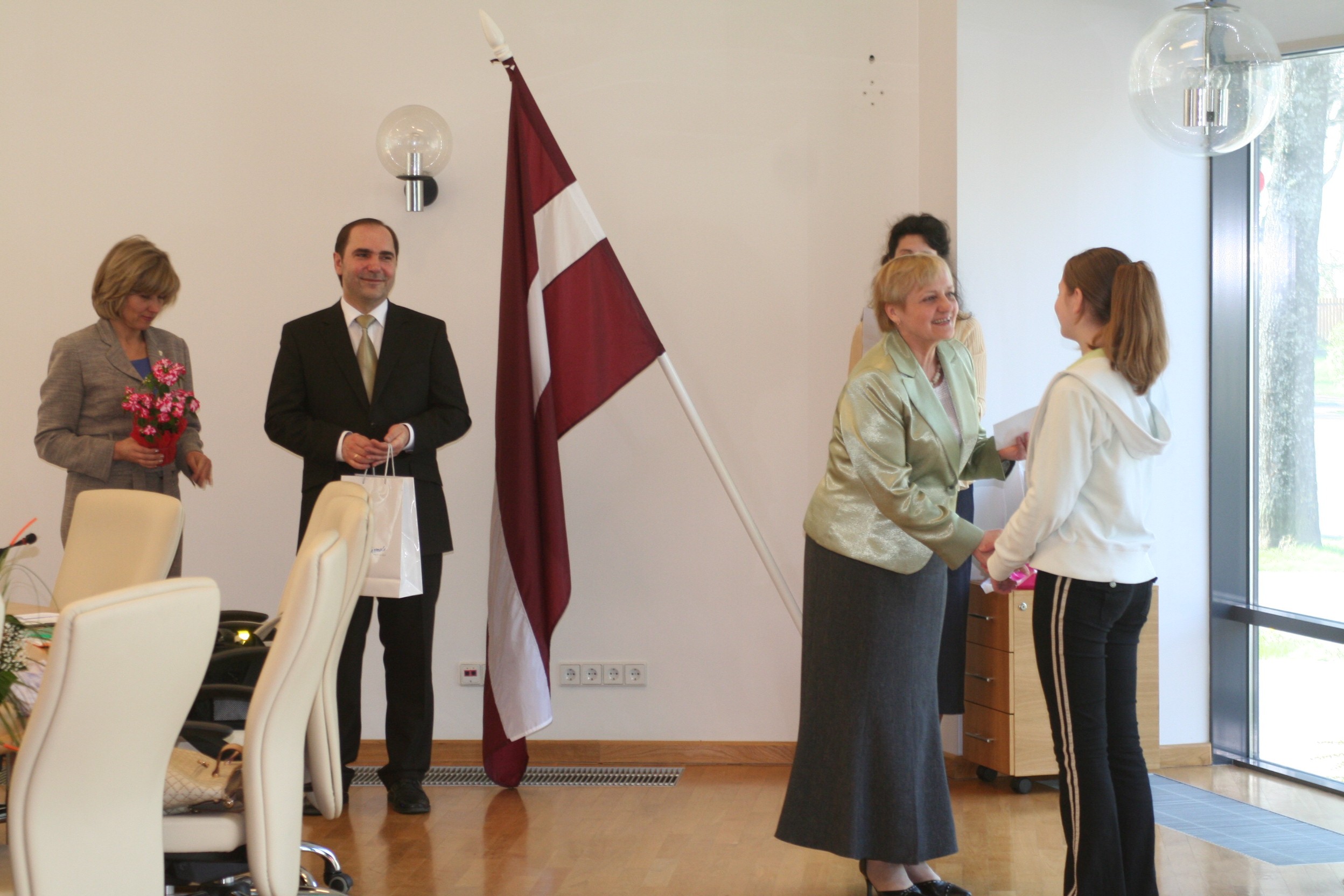 A newly naturalized citizen receives her passport in Jurmala, Latvia.