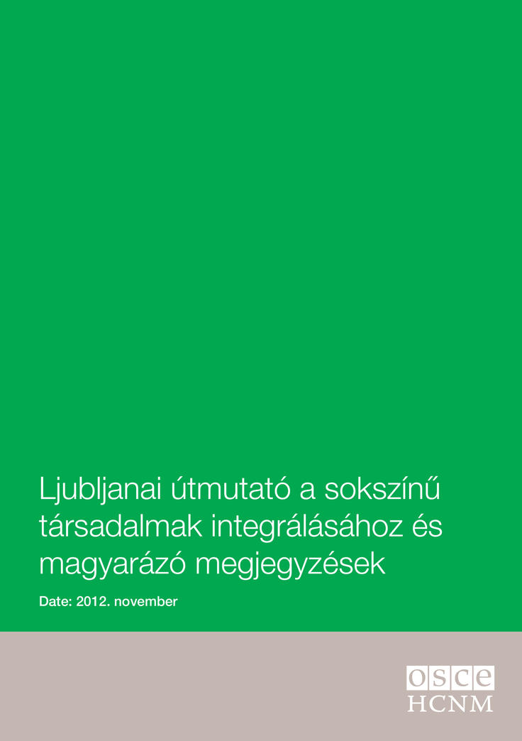 Cover of Ljubljanai útmutató a sokszínű társadalmak integrálásához és magyarázó megjegyzések (The Ljubljana Guidelines on Integration of Diverse Societies)