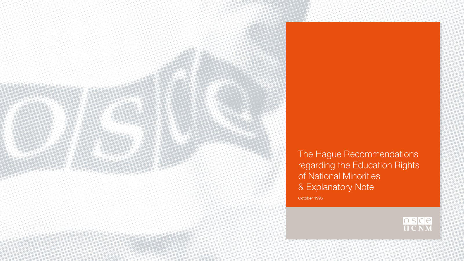 The Hague Recommendations Regarding the Education Rights of National Minorities were published in October 2003.