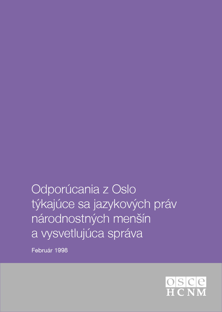 Cover of Odporúcania z Oslo týkajúce sa jazykových práv národnostných menšín (The Oslo Recommendations regarding the Linguistic Rights of National Minorities)